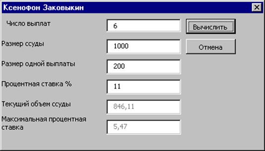 вычисляющая текущий объем ссуды. Требуется найти процентную ставку, при которой